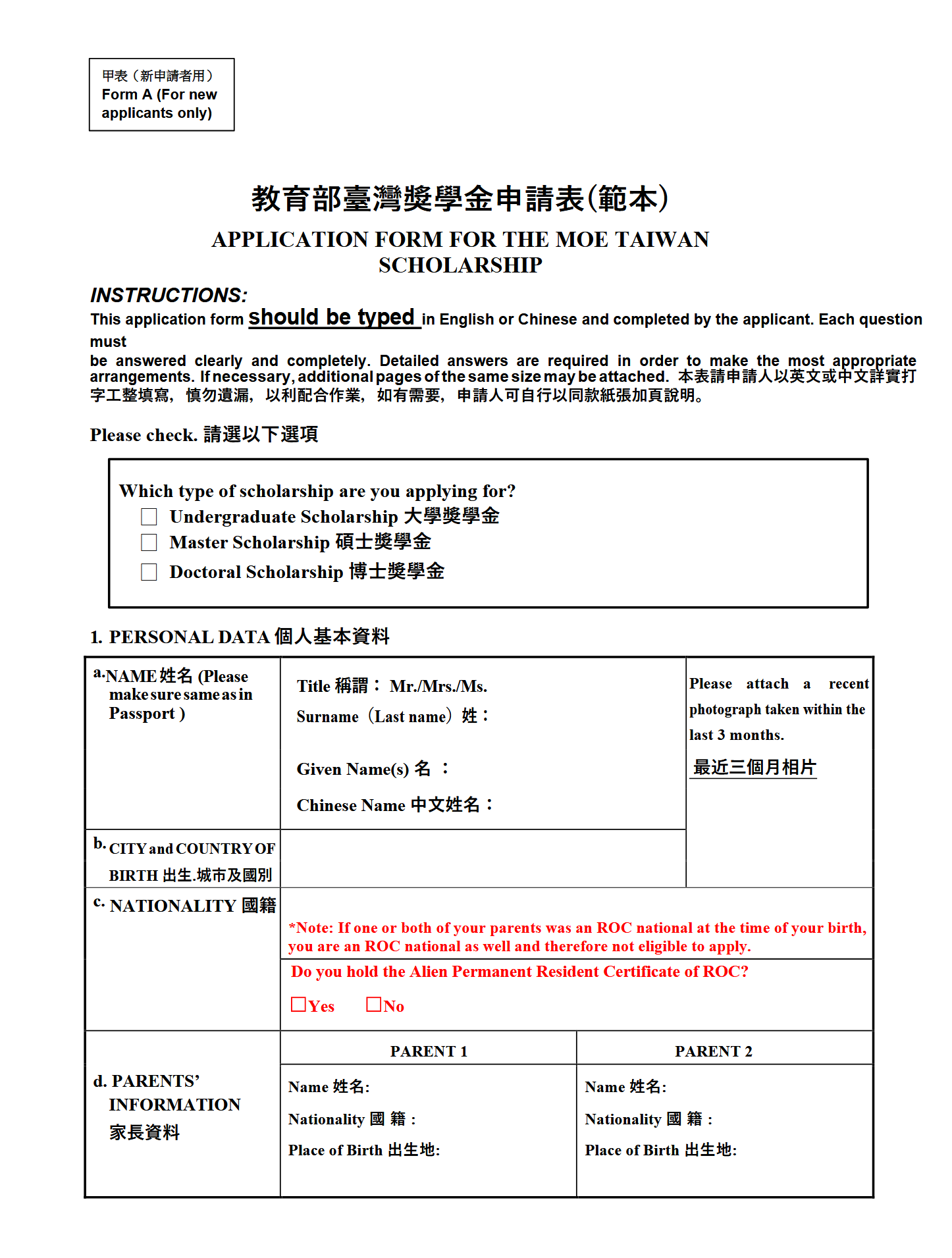 è un programma di borse di studio offerto dal Ministero dell’Educazione di Taiwan per incoraggiare studenti internazionali eccellenti a intraprendere programmi di laurea in Taiwan. Il programma fornisce fino a NTD 40,000 per semestre per coprire le tasse universitarie e le spese varie, oltre a un sussidio mensile di vita di NTD 15,000 o NTD 20,000. Le borse di studio possono essere mantenute per 4 anni per i programmi di laurea, 2 anni per i programmi di master e 4 anni per i dottorati.